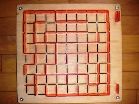 オレンジの板を上から差し込んで、自由に迷路を作れます。すごいですね。