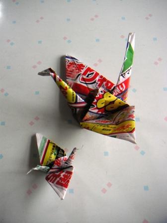 パパに教わりながら、舞ちゃんが作った折鶴です。
