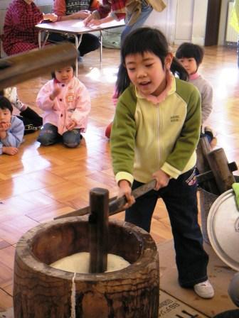 みんなでついたお餅を、あんこと納豆で頂きました。