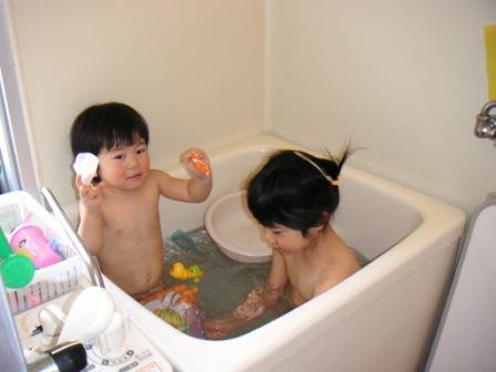 朝からのんびりと、3人でお風呂に入りました。