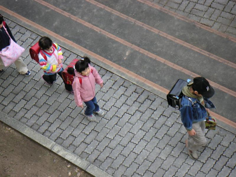 近所のお兄ちゃんお姉ちゃんと、初めての集団登校です。