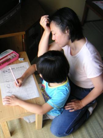 ママと一緒に宿題をする舞ちゃん。