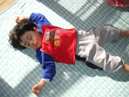 尋くんが、日向ぼっこをしながら気持ちよくて寝てしまいました。