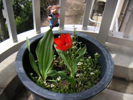 ベランダから「赤い花、咲いたよ!」と、尋くんが教えてくれました。