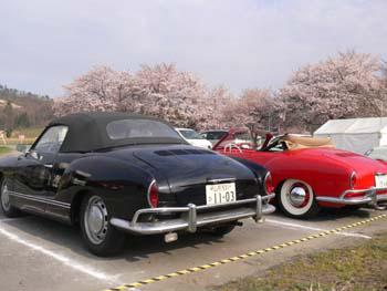 久保の桜の駐車場で桜をバックに仲良くパチリ。