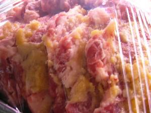 肉のひらのでは、置賜産豚肉を特製の味噌に漬け込んだものが好評を博しています。味噌は普通の味噌と辛味噌の2種類。ごはんのお供としてもビールのお供としても最高!お中元にいかがですか? 栄養価の高い豚肉ですから、暑くて食欲がないとき、夏バテ防止にもいいかも。ぜひ、ご賞味ください。