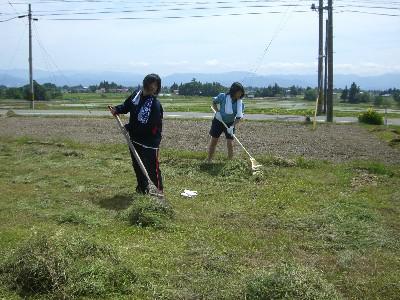世話をした牛に食べてもらう草を集めました。