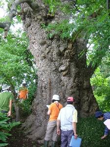 サイカチとは、マメ科の落葉高木で、写真の木は、太さ6m、枝張り17m、高さ15mの巨木。