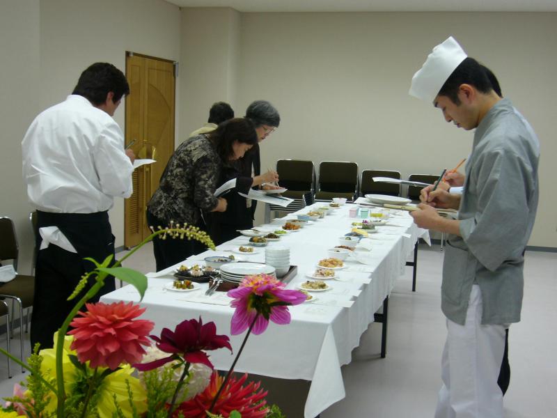 地物の農産物を中心に、季節の料理など37点を出展いただきました。写真は、特別審査の様子。この後、一般審査も行なわれ、4部門の最優秀賞が決定しました。