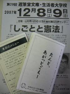 12月8日(土)、9日(日)に行われる「第20回遅筆堂文庫・生活者大学校」。テーマは「しごとと憲法」で、川西町農村環境改善センター(町民総合体育館東側)で行われます。