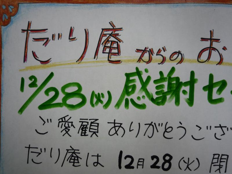 ▼だり庵 感謝感謝の閉店セール
