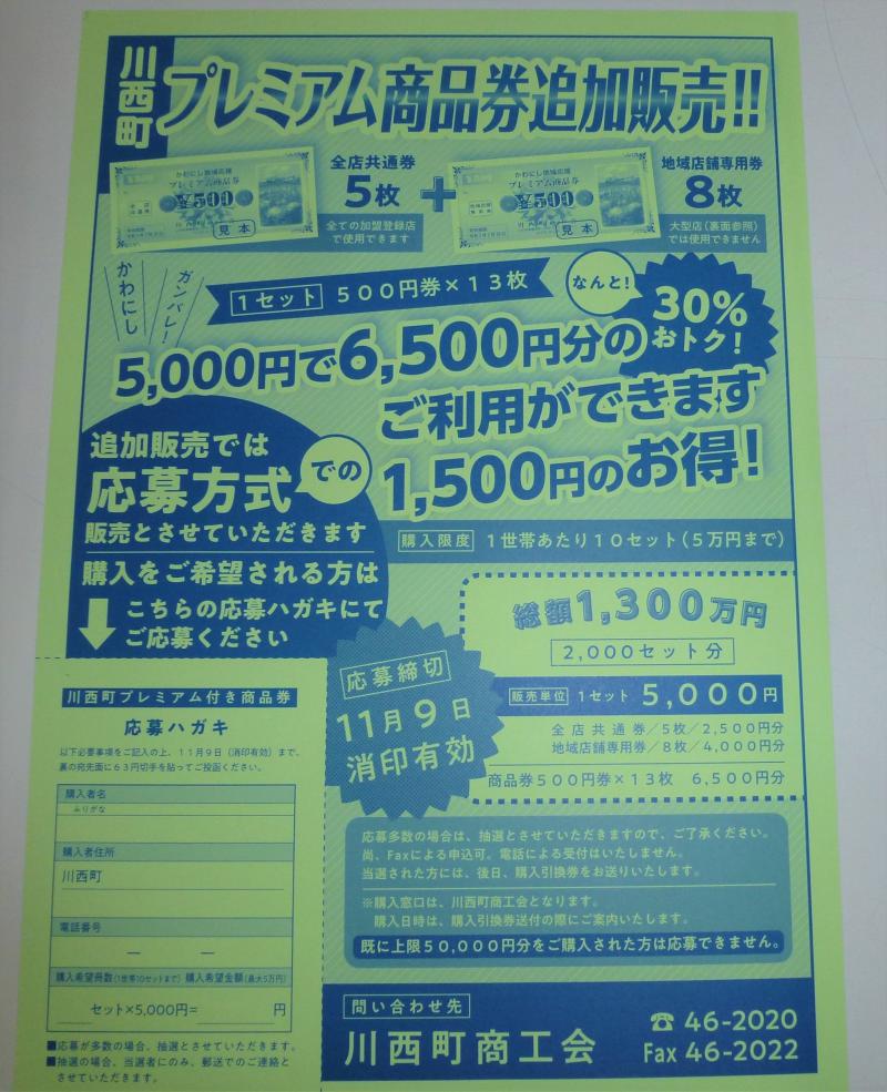 ▼川西町プレミアム商品券追加販売