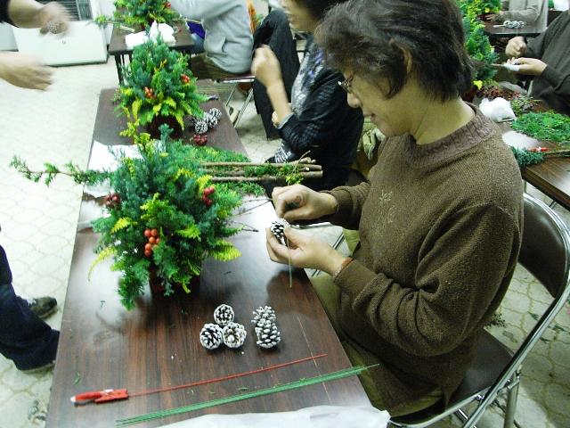 参加者は、講師の話に熱心に耳を傾けながら、思い思いにイメージを膨らませ楽しいクリスマスが迎えられるよう熱心に作成していました。