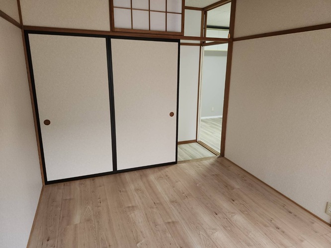 畳がフローリングに変わり、壁/襖も明るい和紙調のクロスになりました