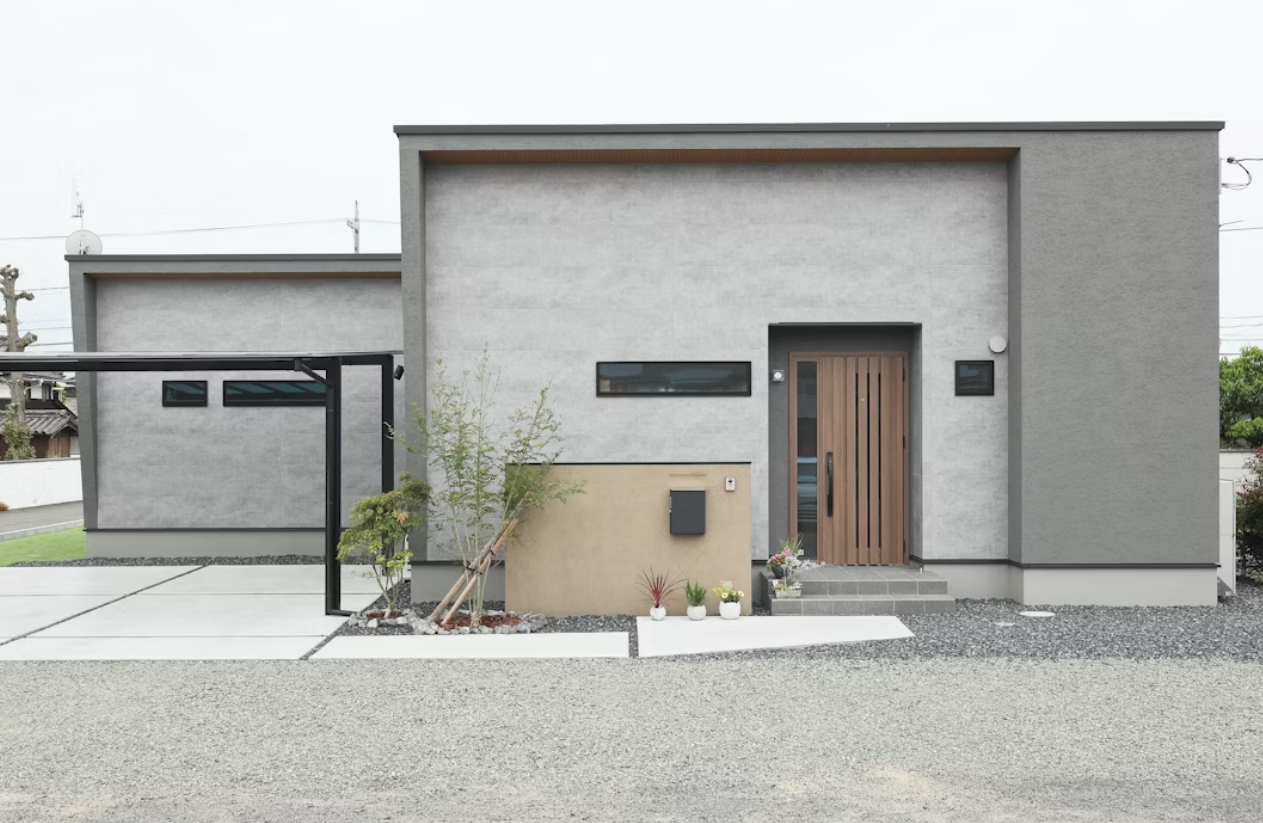 外観に合わせて外構もカラーで門柱にアクセントを設けると一体感が生まれていい感じです。
