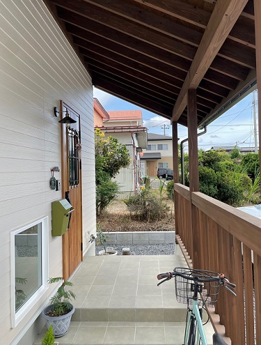 こちらの玄関ポーチは以前に建てさせて頂いた木質感を出すように施工しております。