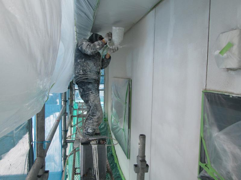 下吹きも終了し、仕上げの吹付けを行っています。