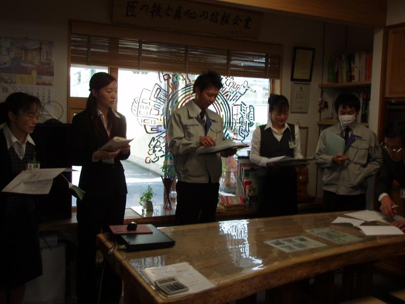 毎週金曜日、朝の5分〜10分間 事務所全員参加で
