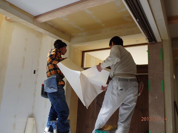 順番としては、まず、天井部分から貼り付けをしていきます。
