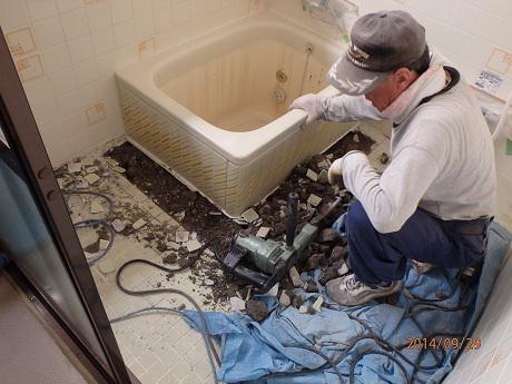 床と壁がタイル貼りの ホウロウ埋め込み浴槽でしたので