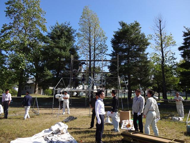 本部席後ろには、大きな足場が組み立てられました。