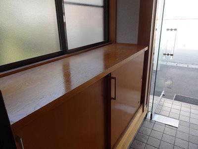 先日、当社の玄関の棚板を貼り替えていただきました。