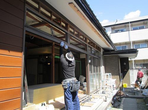 長い窓ガラスの、広い縁側だったところを取り外して、