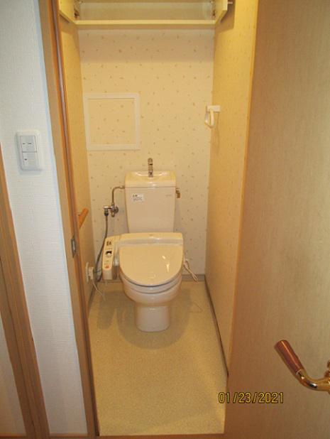 今回は、トイレのクロス張替と床改修工事の