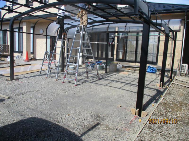 今回は、カーポート工事と玄関アプローチ工事をご覧ください。