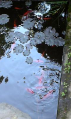 うちの金魚はずっとこの池の中で冬も暮らします。寒くてもちゃんと生きてますし、ネコがきてもちゃんと逃げるので、とてもお利口なんです。