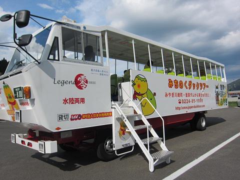 このバスは、水上・陸上共に走行が可能な自動車です。