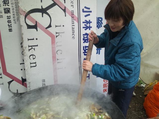 大工さんたちが頑張って作った芋煮を最後にちょっとだけ手伝いました。