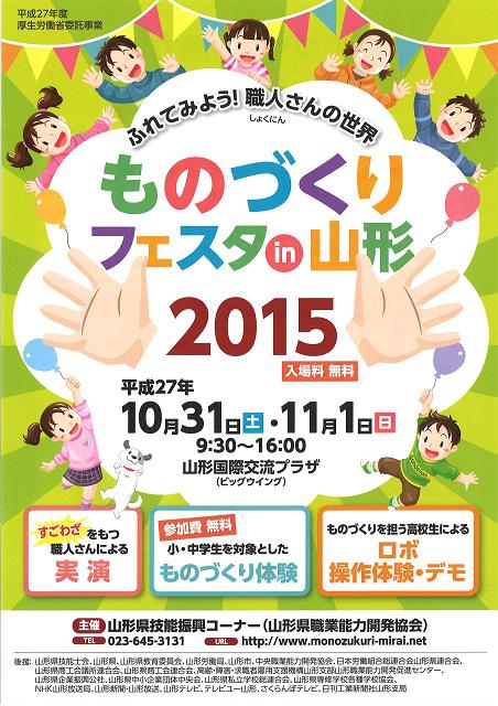 山形国際交流プラザ(ビックウィング)で「ものづくりフェスタin山形2015」が開催されます。