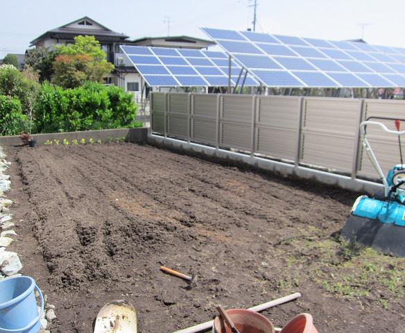 まず耕耘機で耕し、一通りどこに何をするか区切りました。