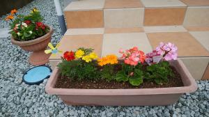 先週、天気が良かったので、娘と一緒にプランターに寄せ植えしました。