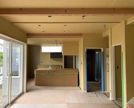 ダンボールをかぶせていますが、キッチン組み立てが終わりました。