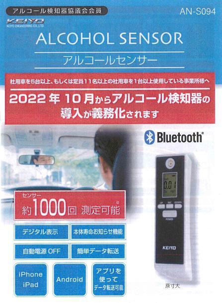 2022年10月から、アルコール検知器の導入が義務化されます。