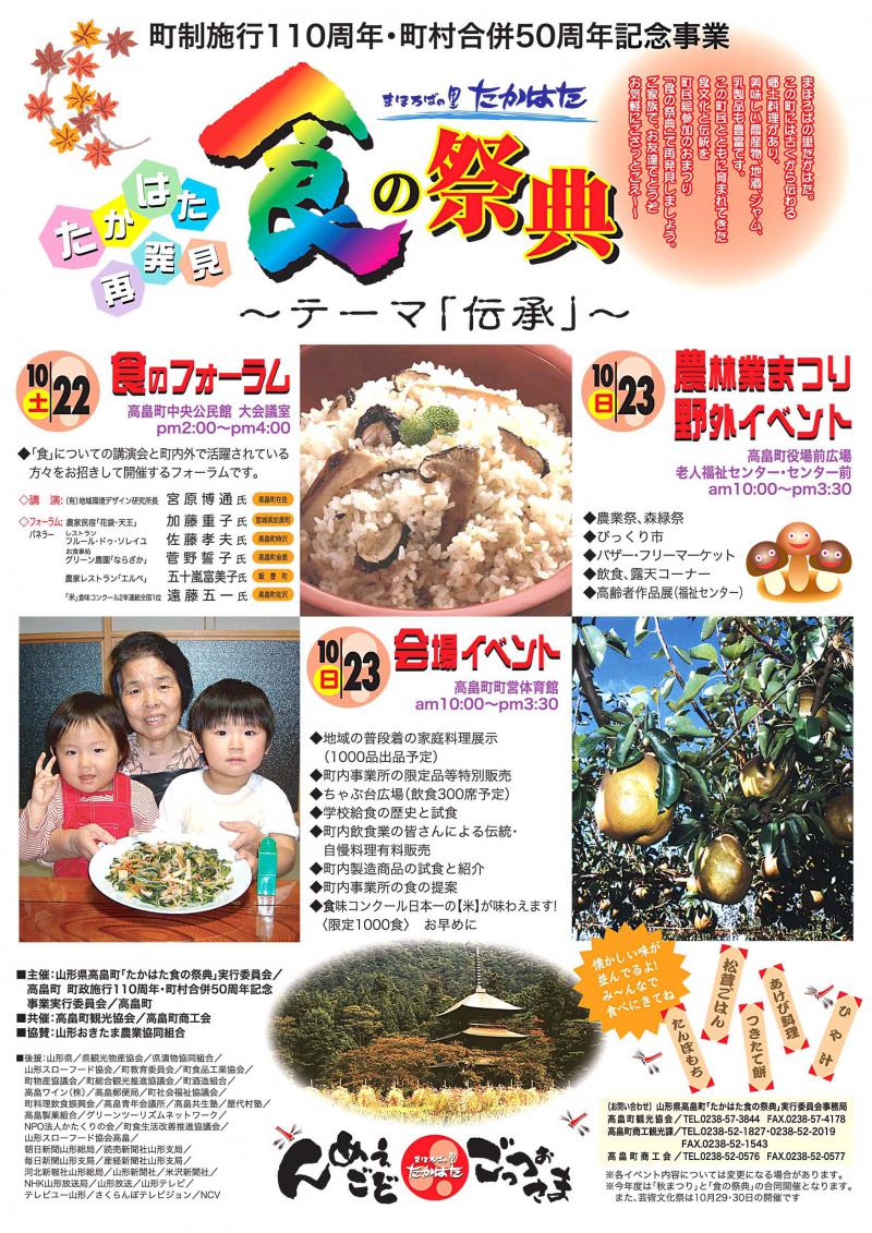 高畠町では、町制施行110周年・町村合併50周年を記念し、町民総参加の『たかはた食の祭典』を開催します。