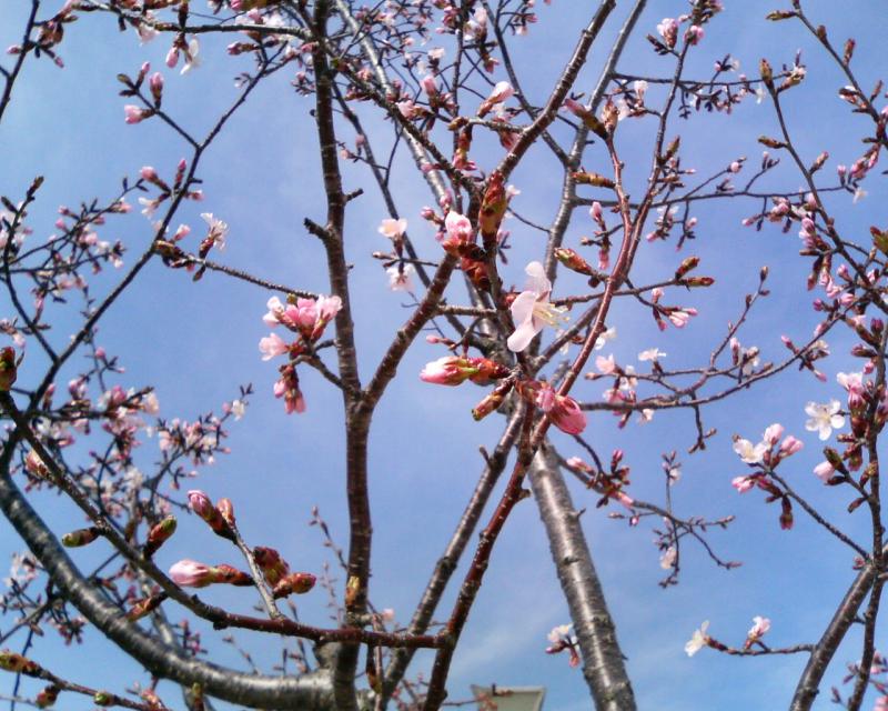 まほろばの緑道の桜が、1・2本ですが咲き始めました\(^o^)/