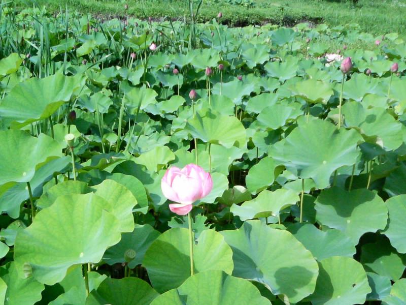 安久津八幡神社の横にある古(いにしえ)の里歴史公園の蓮の花が咲き始めています。