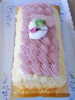桜餡を絞った季節のロールケーキ。生クリームと桜餡がベストマッチ!