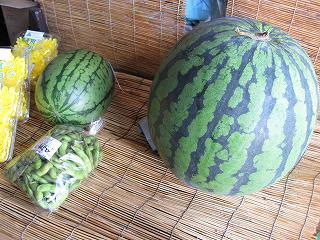 当店では、冷蔵庫が狭いとお悩みのお客様のために、スイカをまるごと冷やして販売しております。どうぞ、お声がけください。