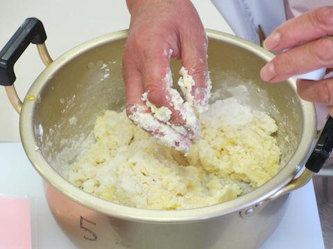 ジャガイモをゆでたものに、米粉を加えてニョッキの生地を作ります。