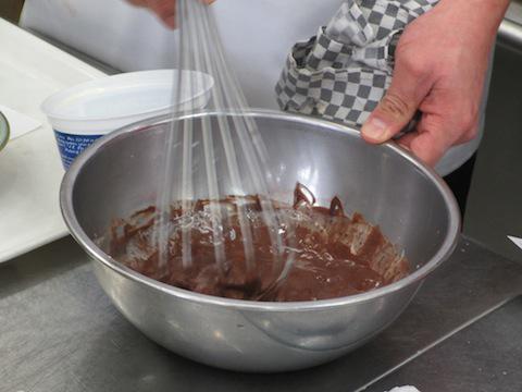チョコとバターを混ぜ、沸騰した生クリームを入れて
