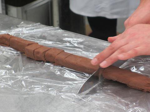 冷やしたガナッシュを棒状にしてさらに冷凍し、