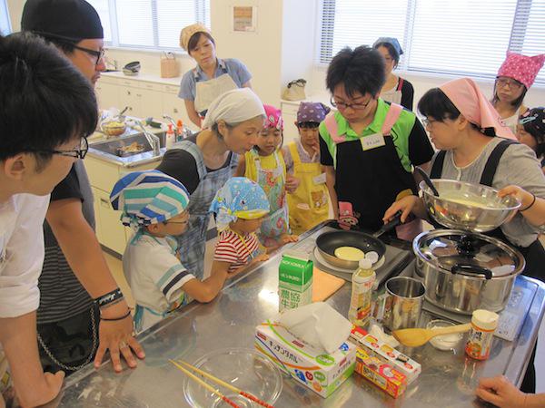 時々、ぬれ布巾にフライパンを置いて温度を調節します。