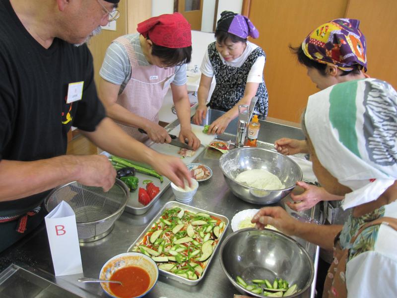 バットに合わせて生地をめん棒などで伸ばし野菜などの具材をのせて、