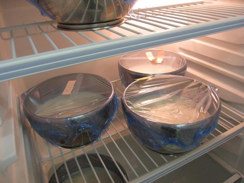 裏ごしをして出来た生地を冷蔵庫で休ませます。