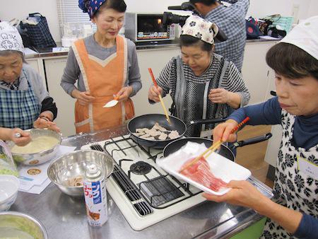 ▼お好み焼きを焼きます。