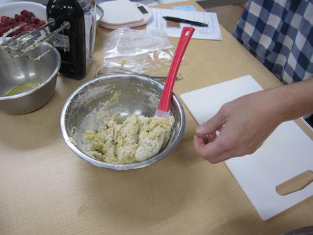 ベーキングパウダーを入れて混ぜ、生地の出来上がりです。